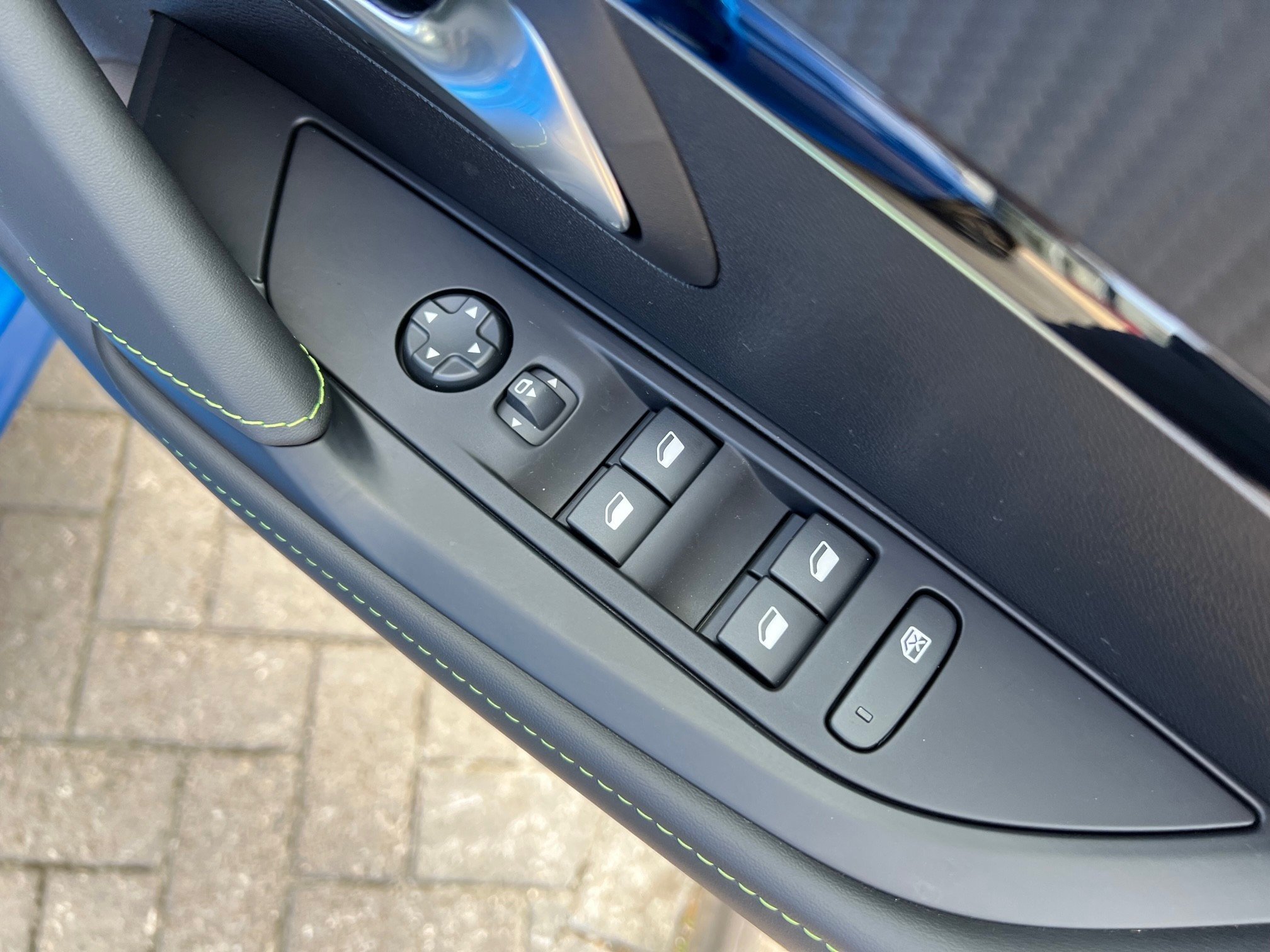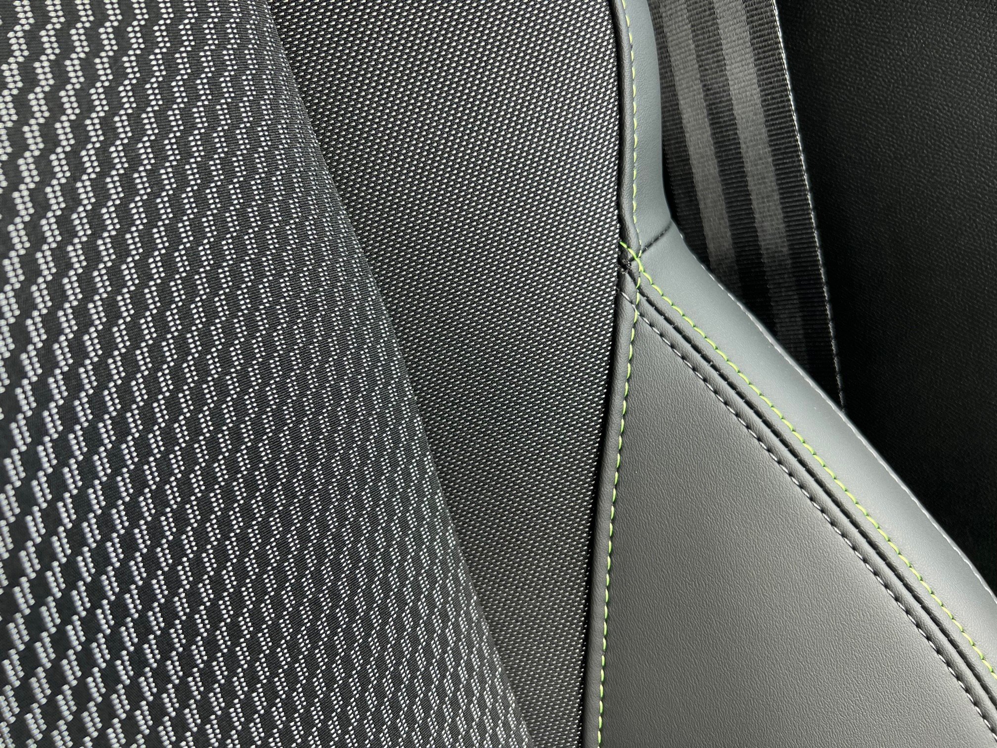 - Adamite Green Contrast Stitching on Front and Rear Door Armrests - Front Centre Console and Dashboard Facia
